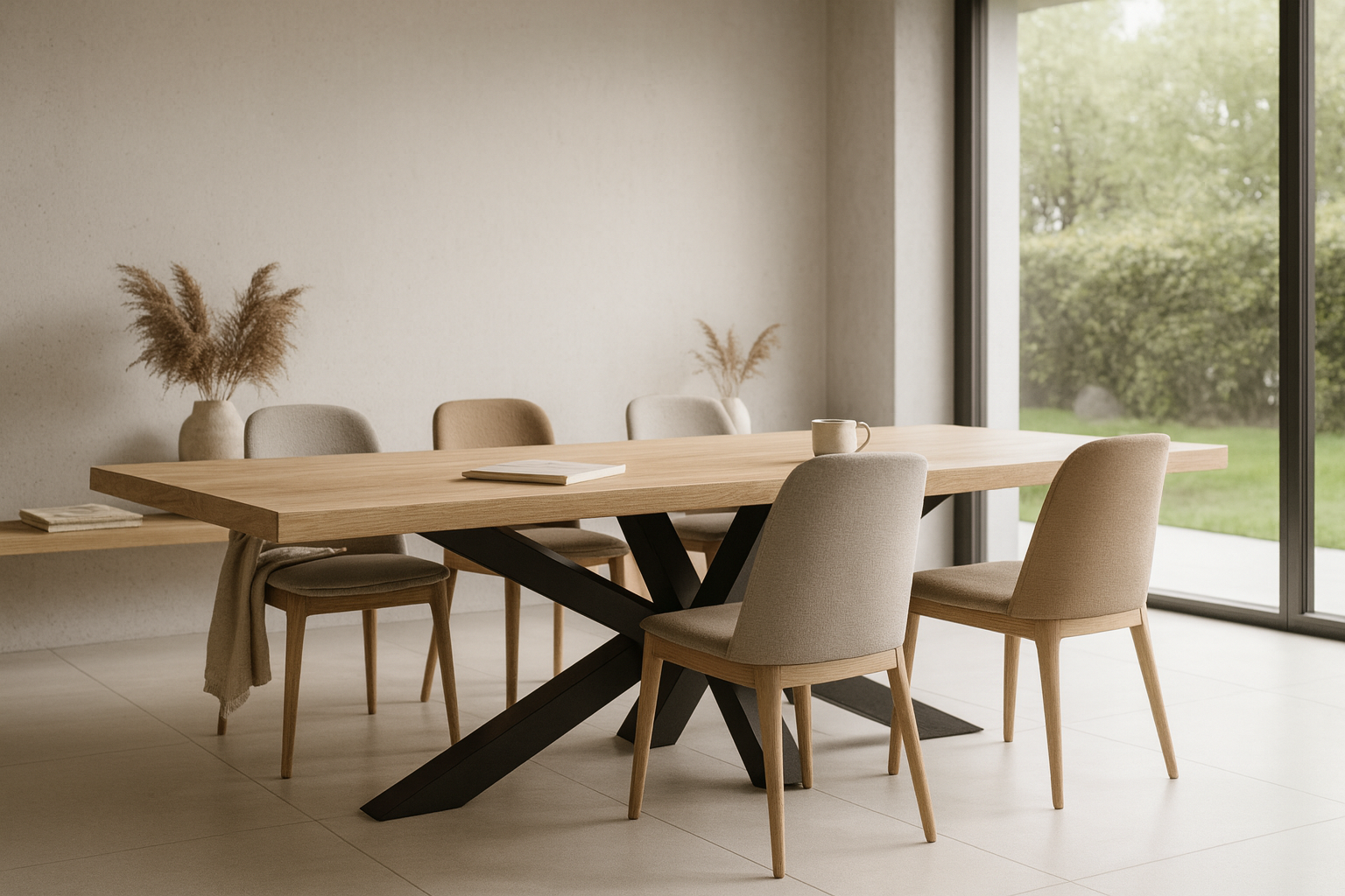 Elegimos lo esencial: mesas de roble macizo, piezas únicas pensadas para durar generaciones.
